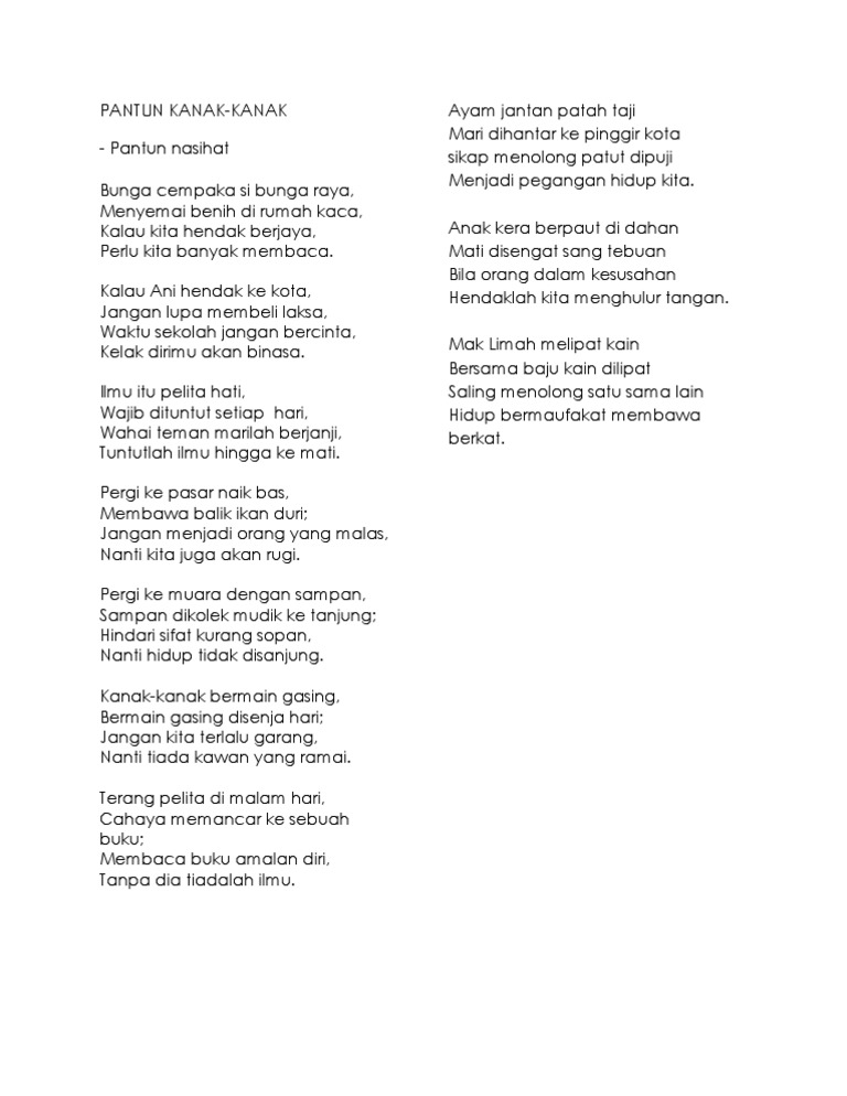 Contact PSS INFINITI on AnyFlip. Seni dan kurikulum seni adalah sebahagian dari kebudayaannya di mana kanak-kanak itu tinggal. Justerujika mereka mendapati ada sesuatu perkara yang tidak kena atau bertujuan untuk memberikan peringatan kepada golongan muda atau kanak-kanak mereka akan menggunakan pantun sebagai alat untuk menyampaikan nasihat dan didikan.